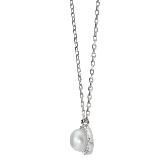 Collana Argento Zirconia rodiato Perla coltivata d'acqua dolce bianco, 6 mm 40-45 cm Ø7.5 mm