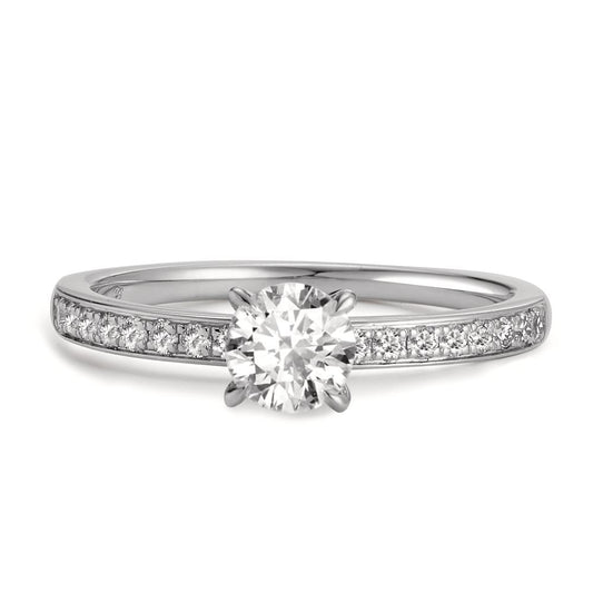 Anello solitario Platino 950 Diamante bianco, 0.47 ct, [Brillant], w-si, Diamante bianco, 0.18 ct, 18 pietra, [Brillant], w-si