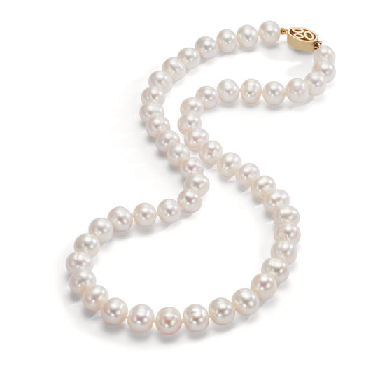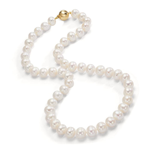 Collana Oro giallo 750/18 carati Perla coltivata d'acqua dolce bianco 8-8.5 mm 45 cm