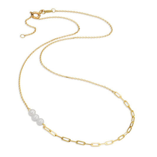 Collana Oro giallo 375/9K Perla coltivata d'acqua dolce, 3 Perla, 4 mm 42 cm