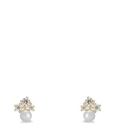 Orecchini a bottone Oro giallo 375/9K Zirconia 6 pietra Perla coltivata d'acqua dolce, 2 Perla, 2.5 mm