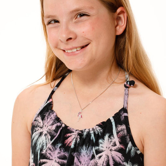 Ciondolo Argento Zirconia rosa, 7 pietra laccato Fenicottero