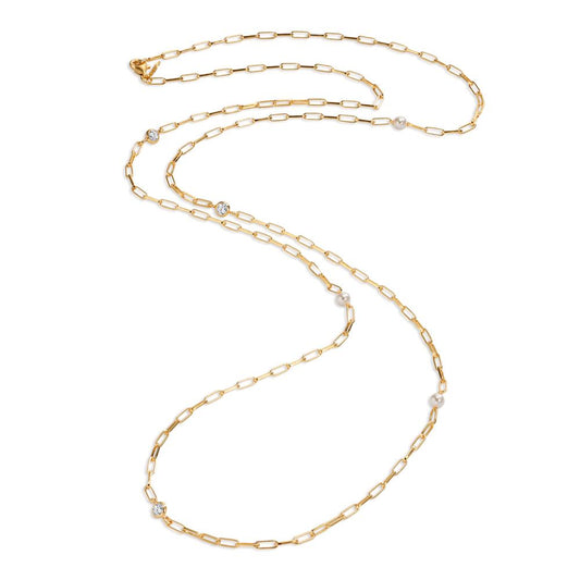 Collana Argento Zirconia 2 pietra giallo dorato [shining Pearls], 3 Perla, 4 mm 85 cm