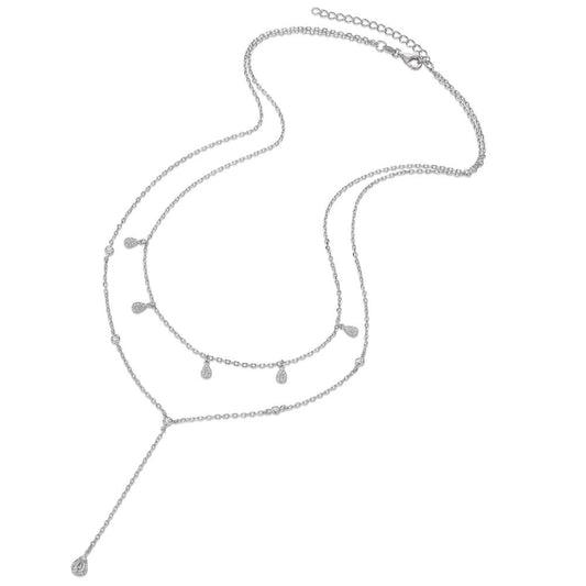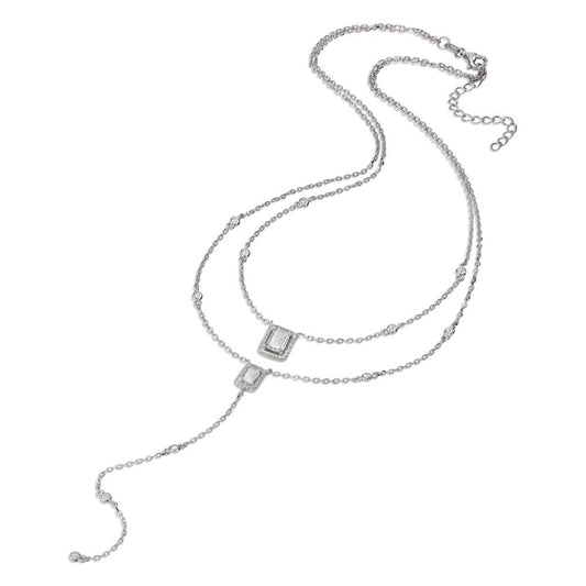 Collana Argento Zirconia, Quarzo bianco rodiato 39-44 cm