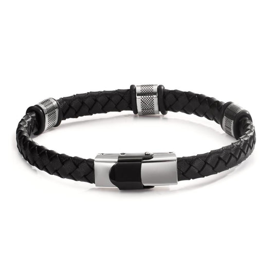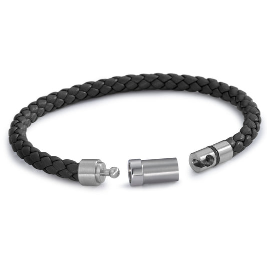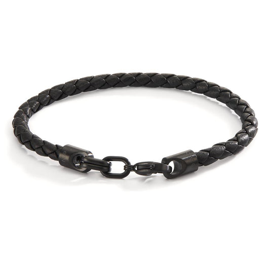 Bracciale Acciaio inossidabile, Pelle nero rivestimento IP Ø5 mm