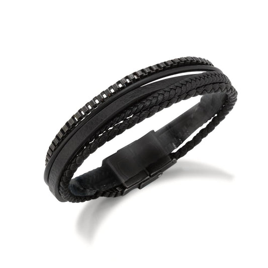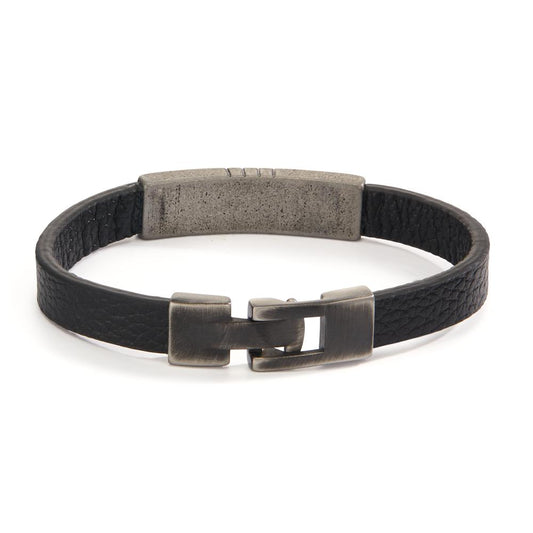 Bracciale Acciaio inossidabile, Pelle nero rivestimento IP 22 cm
