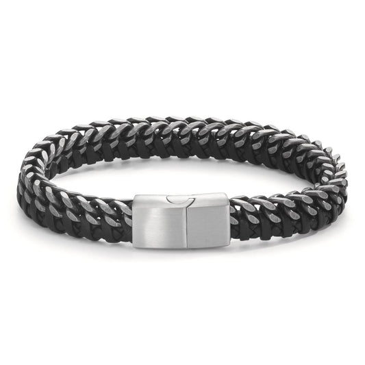 Bracciale Acciaio inossidabile, Pelle, Gomma nero rivestimento IP 22 cm