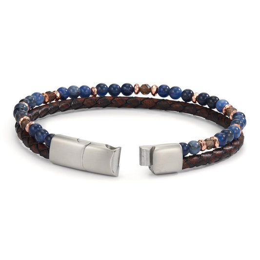 Bracciale Acciaio inossidabile, Pelle Sodalite, Citrino, Ematite rosa rivestimento IP 20-21 cm
