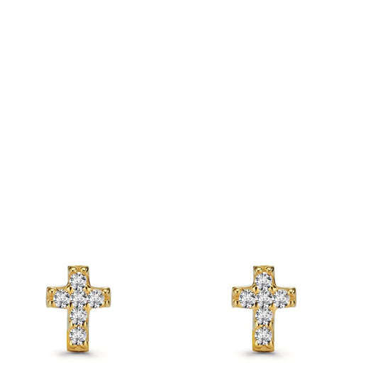 Orecchini a bottone Oro giallo 375/9K Zirconia 12 pietra Croce