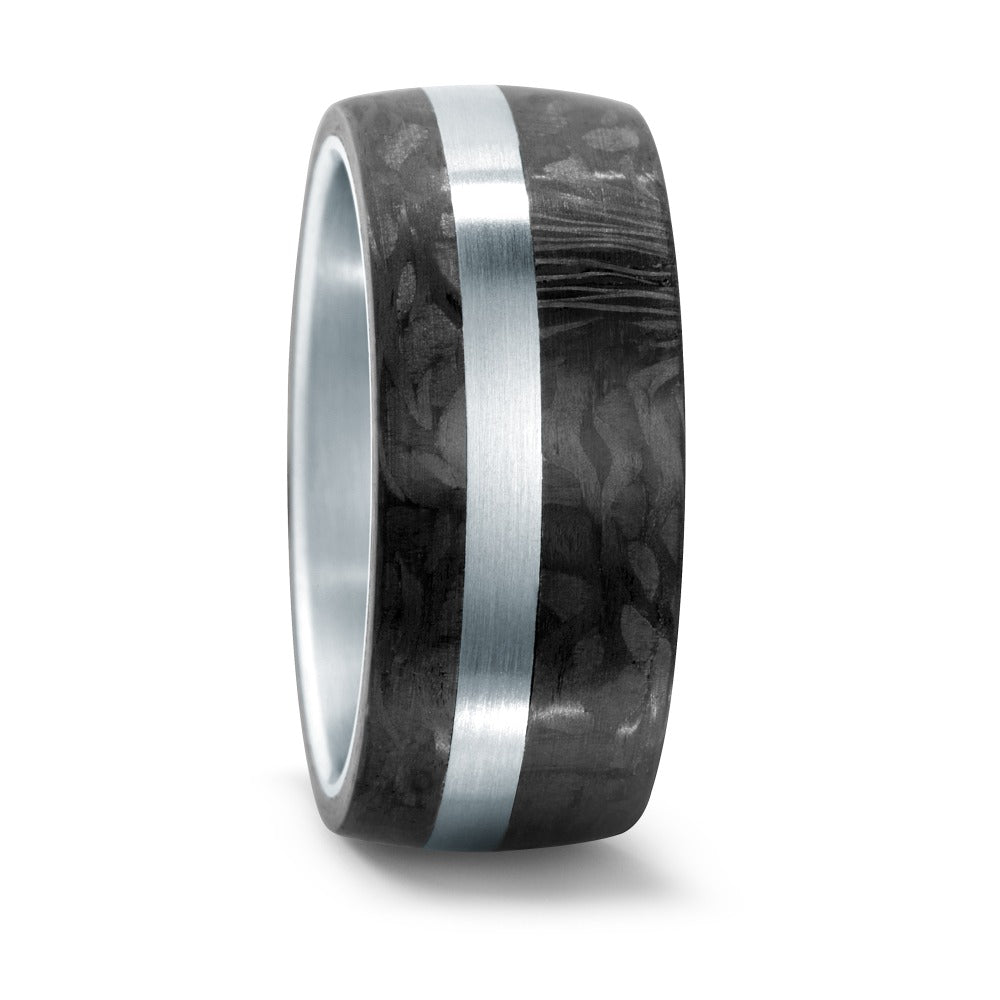 Anello da uomo moderno in acciaio inossidabile con elegante inserto in carbonio. Design robusto e raffinato, perfetto per chi cerca uno stile unico e contemporaneo. Resistente e leggero, ideale per l’uso quotidiano o occasioni speciali.