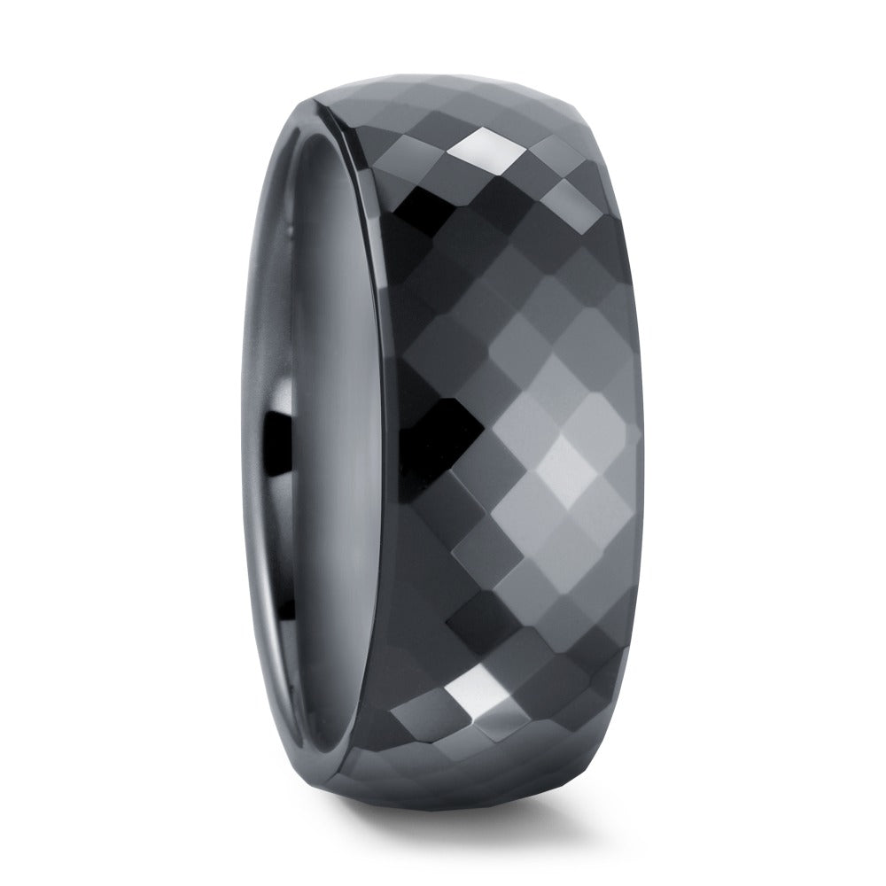 Anello da dito in ceramica nera con finitura sfaccettata che cattura la luce a ogni movimento. Design moderno e resistente, ideale per un look elegante e contemporaneo. Leggero e confortevole, perfetto per l'uso quotidiano o occasioni speciali.
