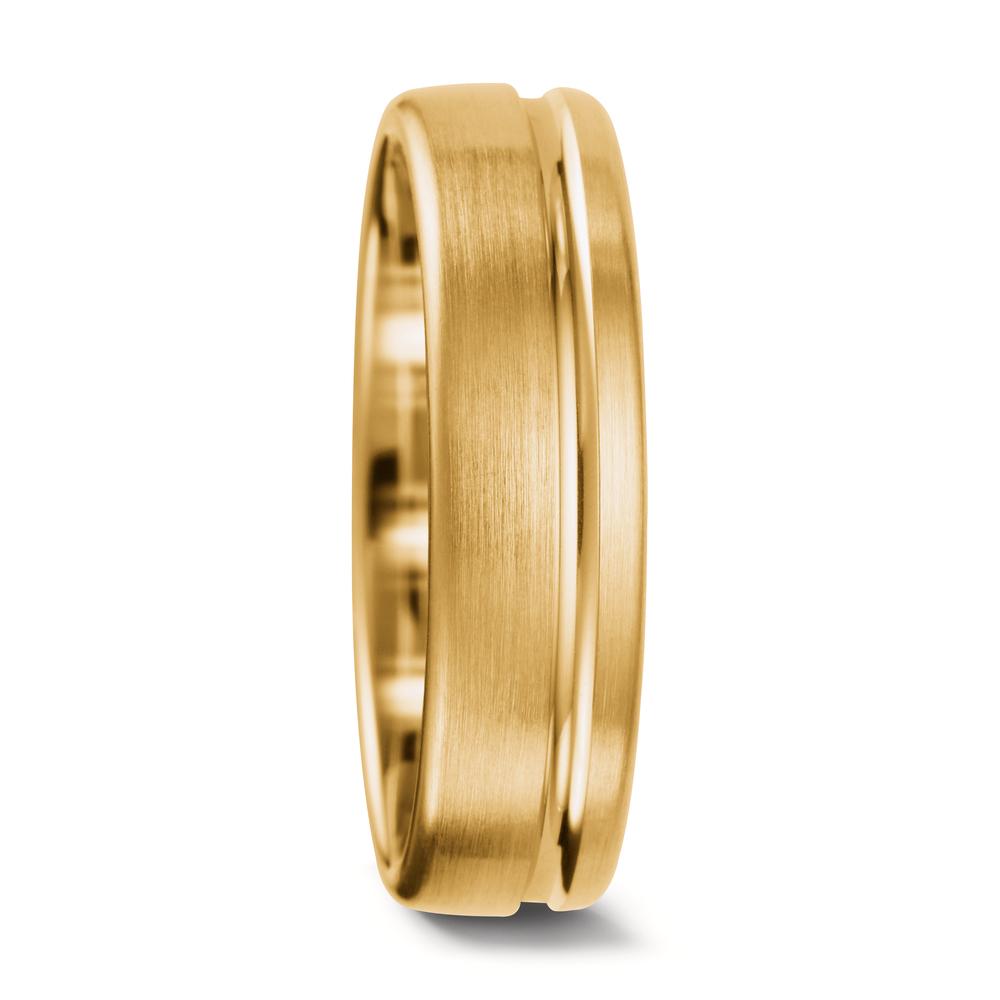Elegante fede nuziale realizzata in oro giallo 750, caratterizzata da una finitura satinata con un dettaglio lucido centrale. Un simbolo perfetto di amore e unione, dal design classico e senza tempo, ideale per celebrare ogni momento speciale insieme.