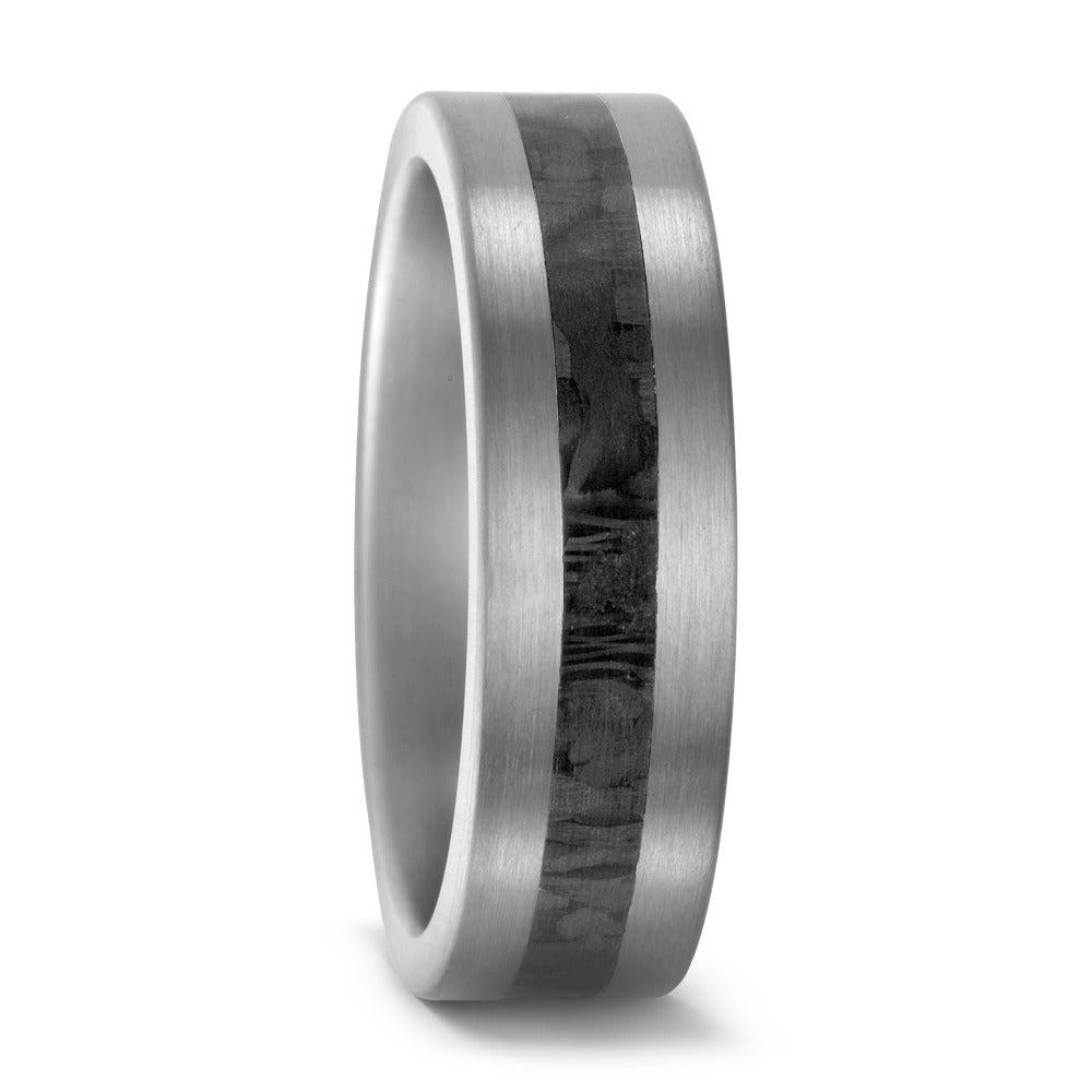 Anello da coppia elegante in titanio con fascia centrale in carbonio. Design moderno e resistente, perfetto per chi cerca un accessorio esclusivo e leggero. Ideale come simbolo di unione e stile senza tempo. Confortevole da indossare ogni giorno.