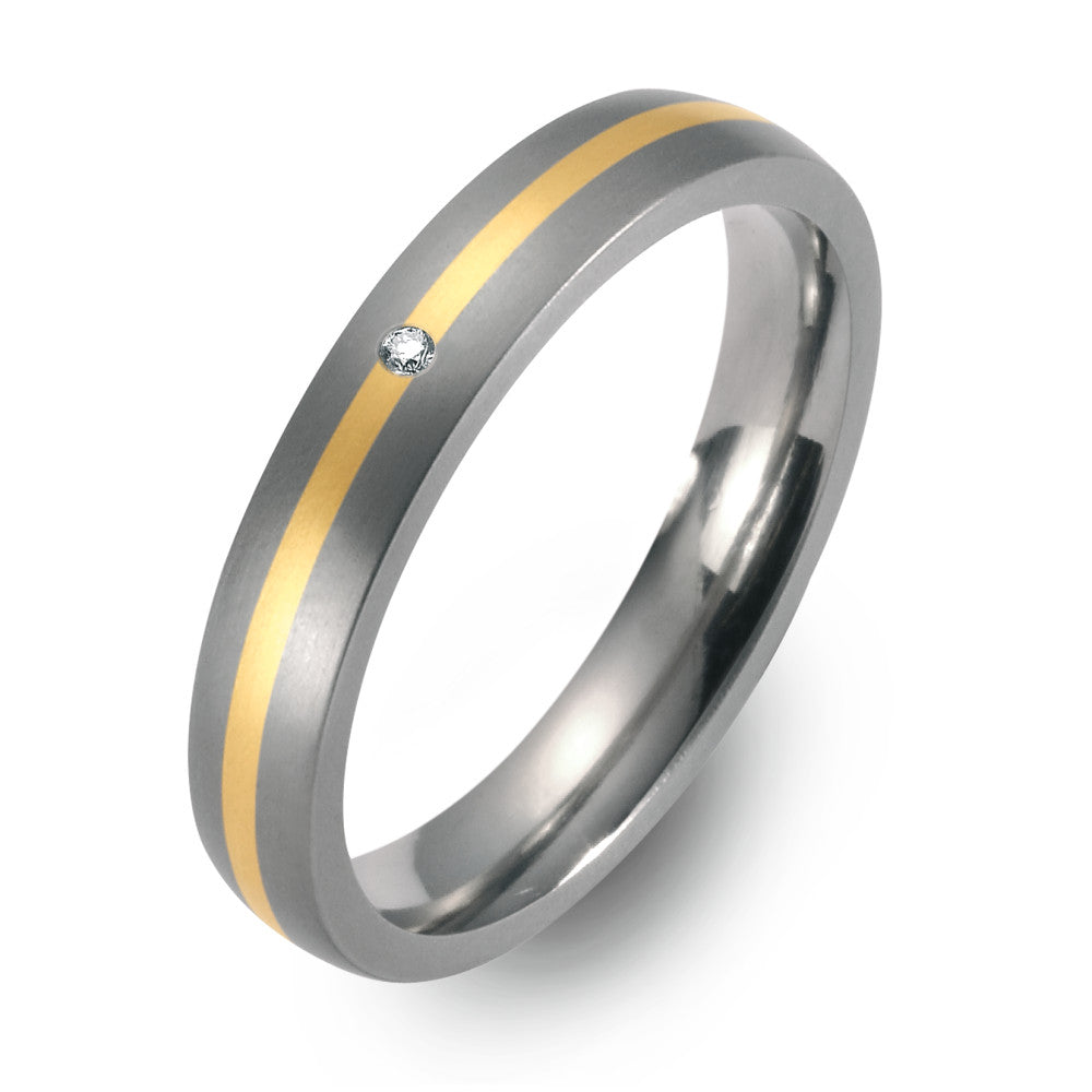 Anello del partner Titanio, Oro giallo 750/18 carati Diamante 0.02 ct