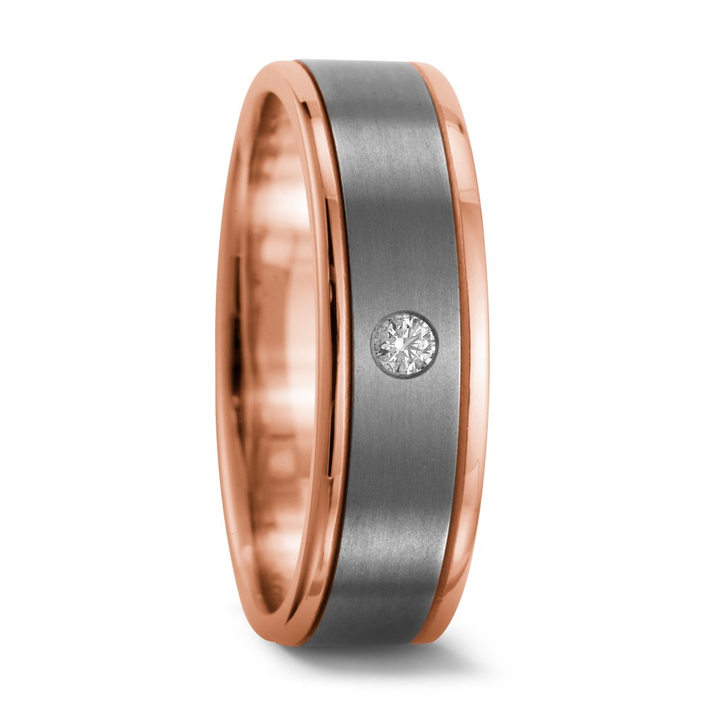 Anello del partner Titanio, Oro rosso 750/18 carati Diamante 0.05 ct, w-si