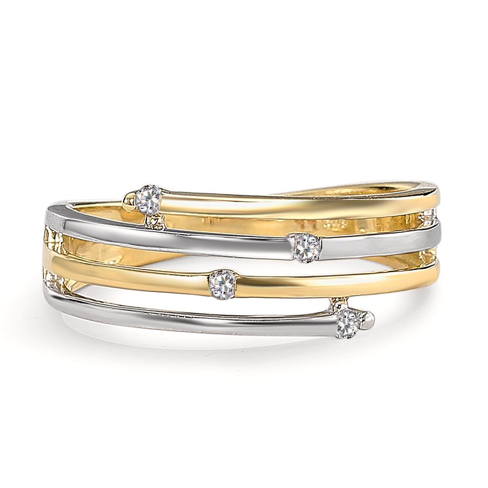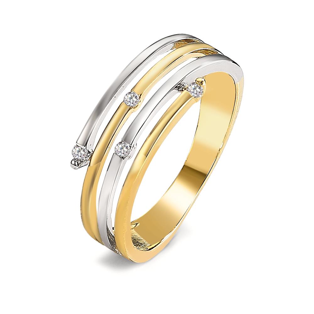 Anello da donna realizzato in oro giallo 375, caratterizzato da un design elegante con dettagli in oro bianco e impreziosito da diamanti scintillanti. Un gioiello raffinato ideale per ogni occasione, che unisce stile classico e modernità con un tocco di luminosità.
