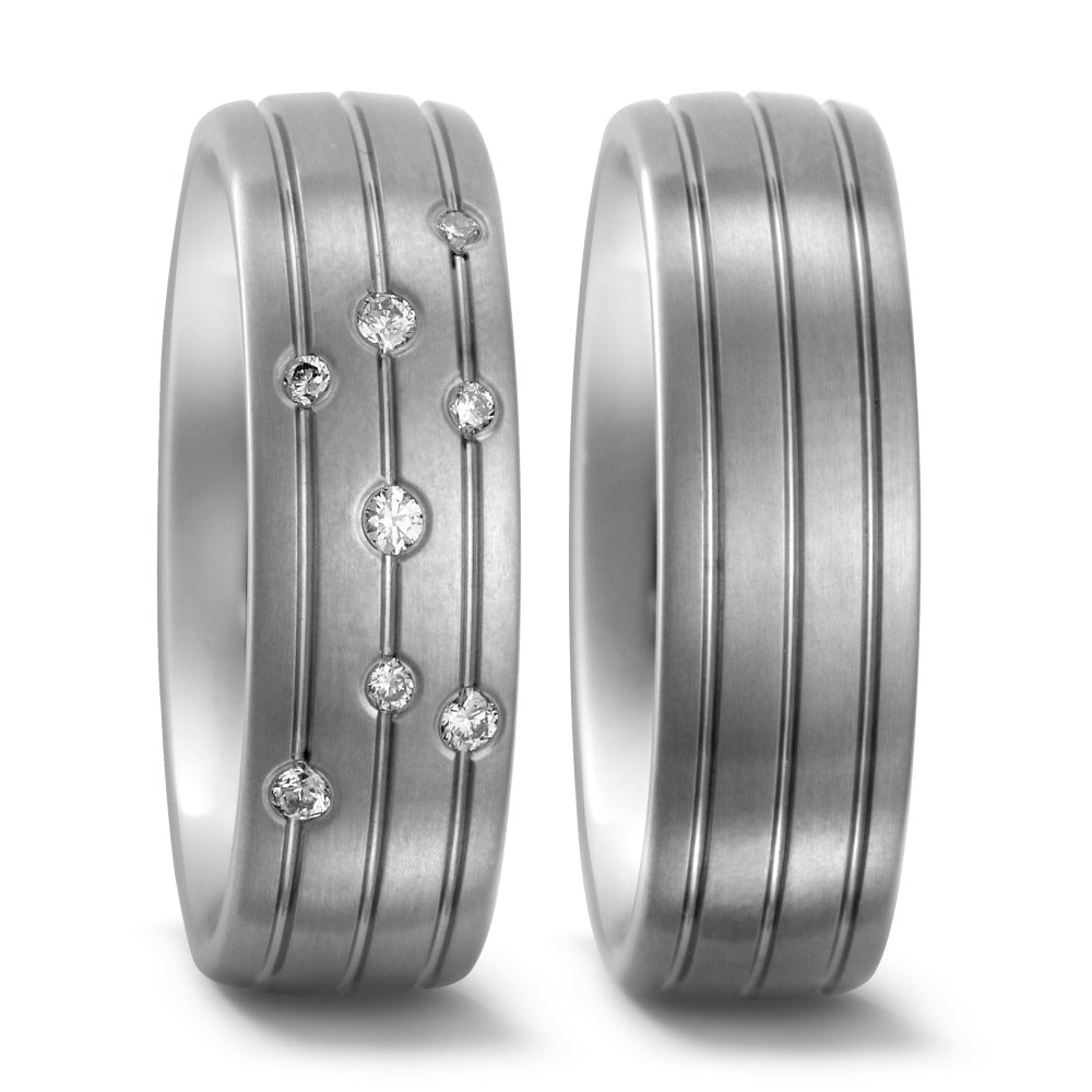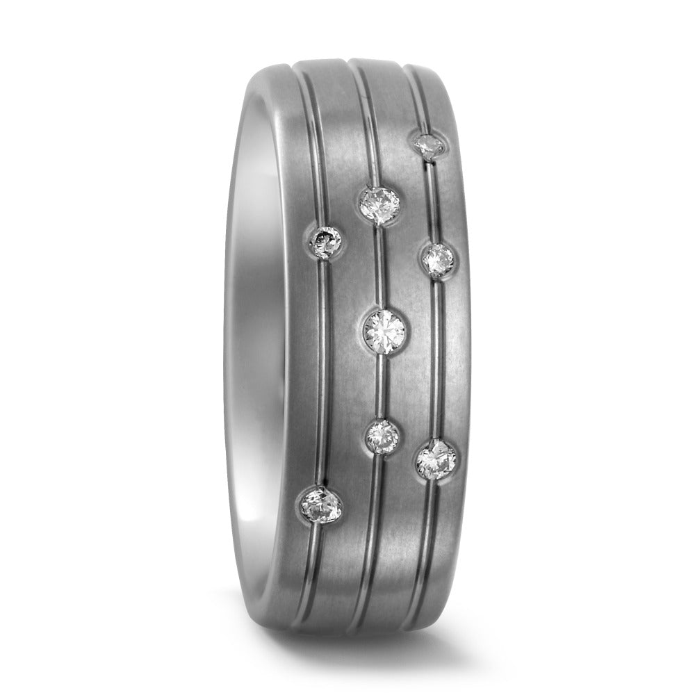 Anello Titanio Diamante 0.12 ct, 8 pietra, w-si