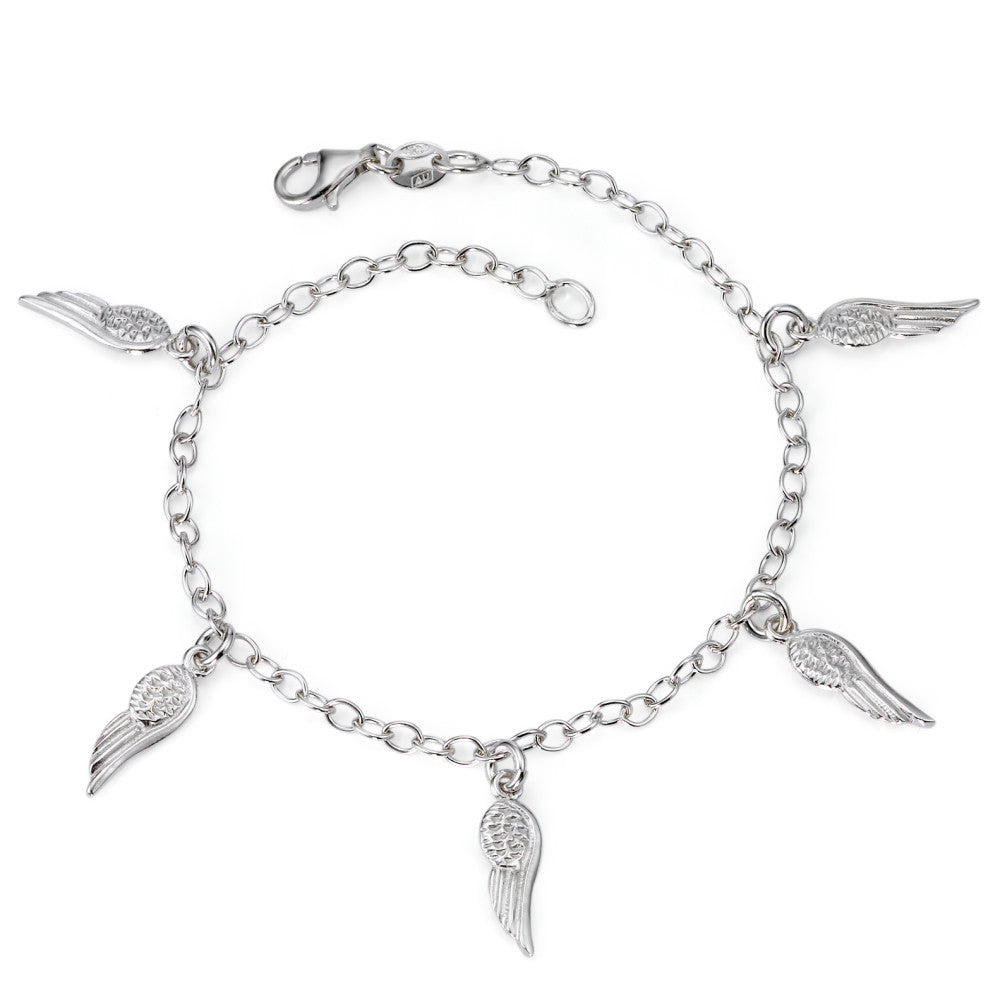 Bracciale da donna in argento con charm a forma di ali. Elegante e delicato, questo gioiello aggiunge un tocco leggero e raffinato al polso, perfetto per ogni occasione. Design leggero e dettagli curati per uno stile unico e moderno.