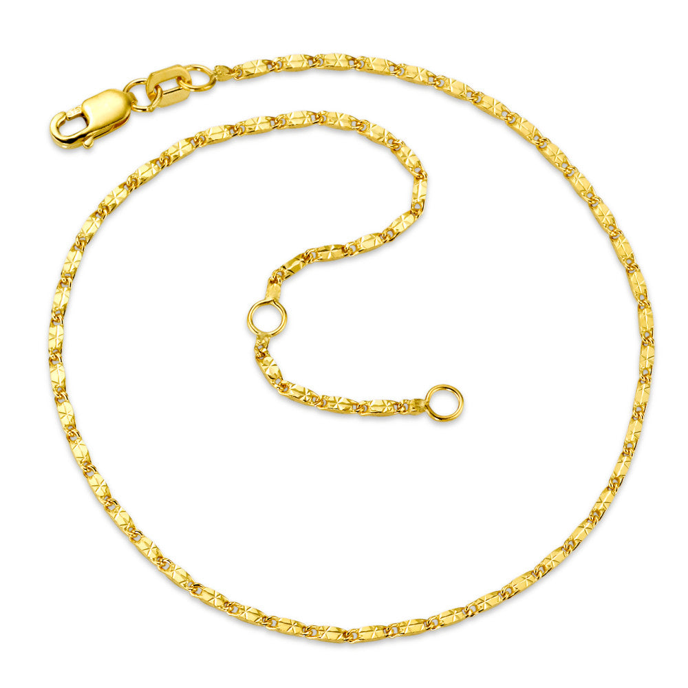 Delicato cavigliera da donna in oro giallo 375, dal design elegante e raffinato. Perfetta per ogni occasione, aggiunge un tocco di luminosità e stile al tuo look estivo o quotidiano. Leggera e confortevole, è un gioiello intramontabile da indossare con piacere.