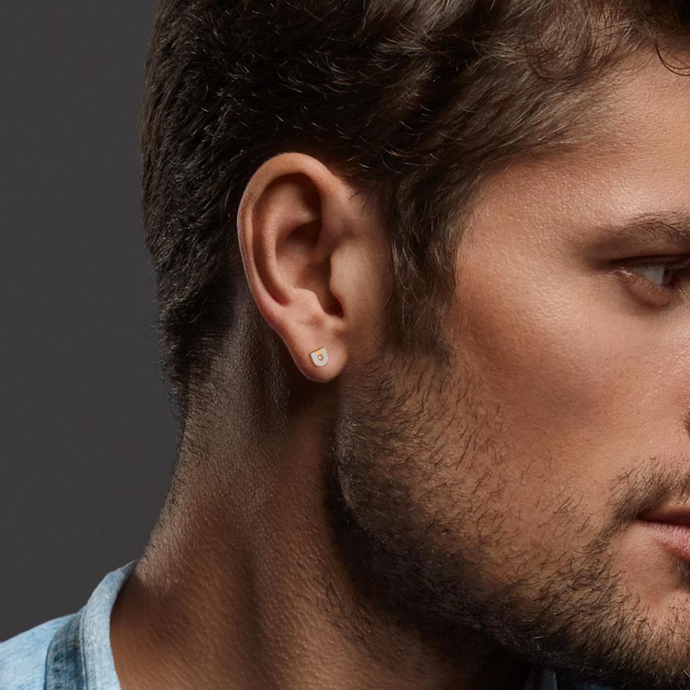 Orecchino da uomo in platino 950 con diamante luminoso. Design moderno con dettaglio in oro giallo, perfetto per un tocco elegante e sofisticato. Un unico pezzo raffinato, ideale per chi cerca un gioiello prezioso e discreto.
