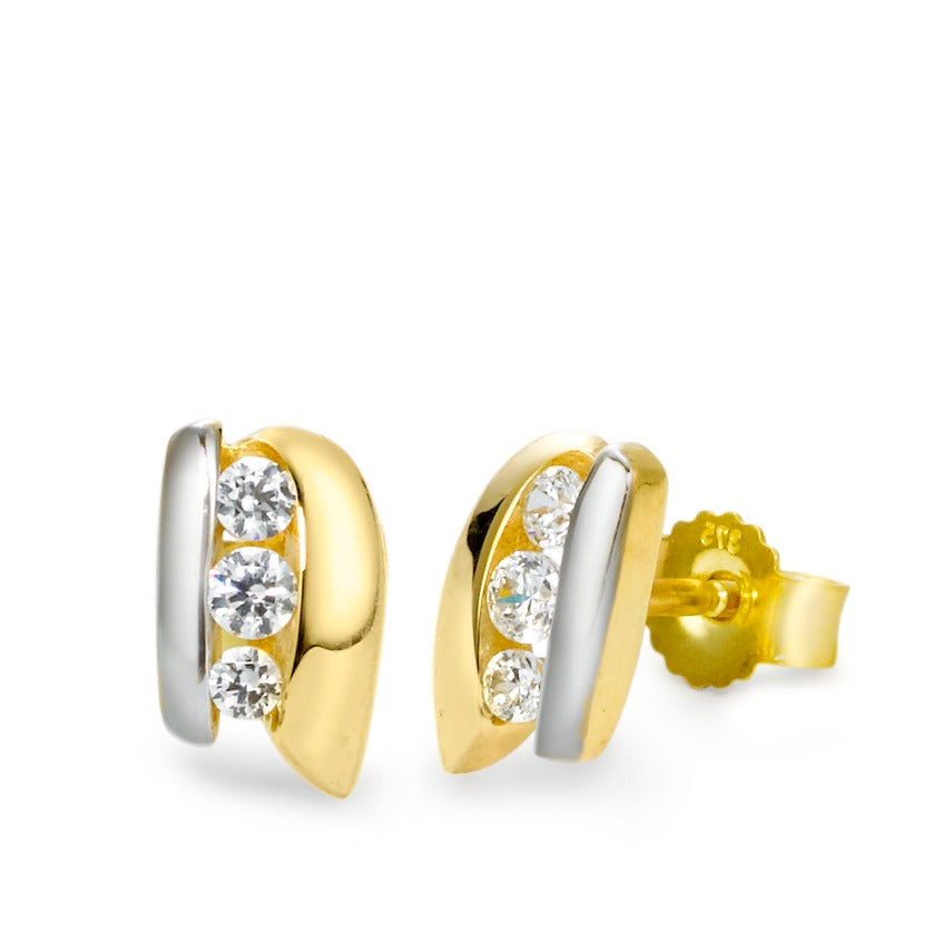 Orecchini a bottone Oro giallo 375/9K, Oro bianco 375/9K Zirconia 6 pietra