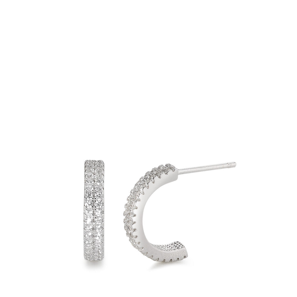 Eleganti orecchini a cerchio da donna in argento 925, impreziositi da scintillanti zirconi bianchi. Il design raffinato e la brillantezza delle pietre donano un tocco di classe e femminilità, perfetti per ogni occasione, dal giorno alla sera. Leggeri e confortevoli da indossare.