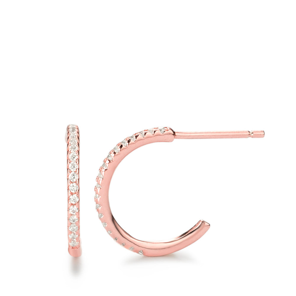 Orecchini a cerchio da donna in argento con finitura rosé. Preziosi zirconi incastonati lungo la superficie donano un elegante tocco di luce, perfetti per arricchire ogni look con classe e raffinatezza. Design moderno e sofisticato, ideali per ogni occasione.