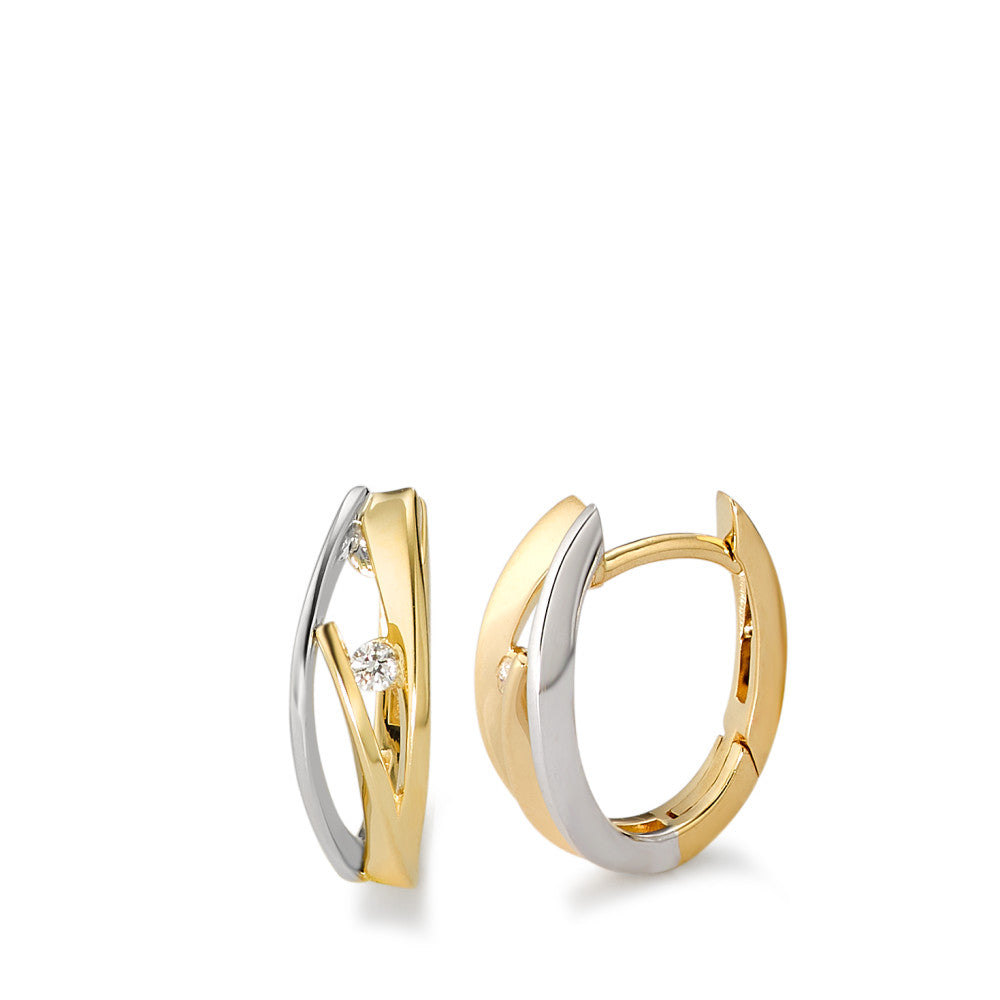 Orecchini circolari Oro giallo 750/18 carati, Oro bianco 750/18 carati Diamante bianco, 0.06 ct, 2 pietra, [Brillant], w-si