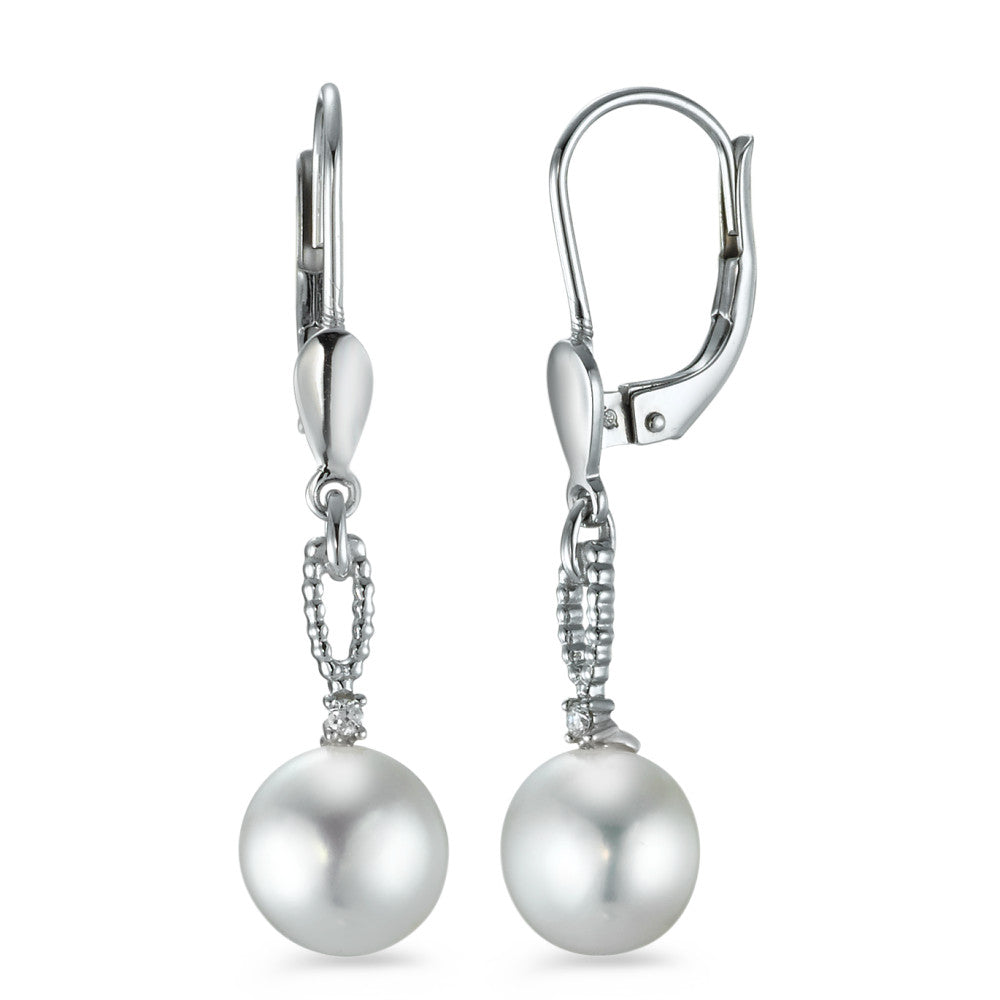 Orecchini Oro bianco 750/18 carati Diamante 0.02 ct, 2 pietra, [Brillant], p1 Perla coltivata d'acqua dolce 7-7.5 mm
