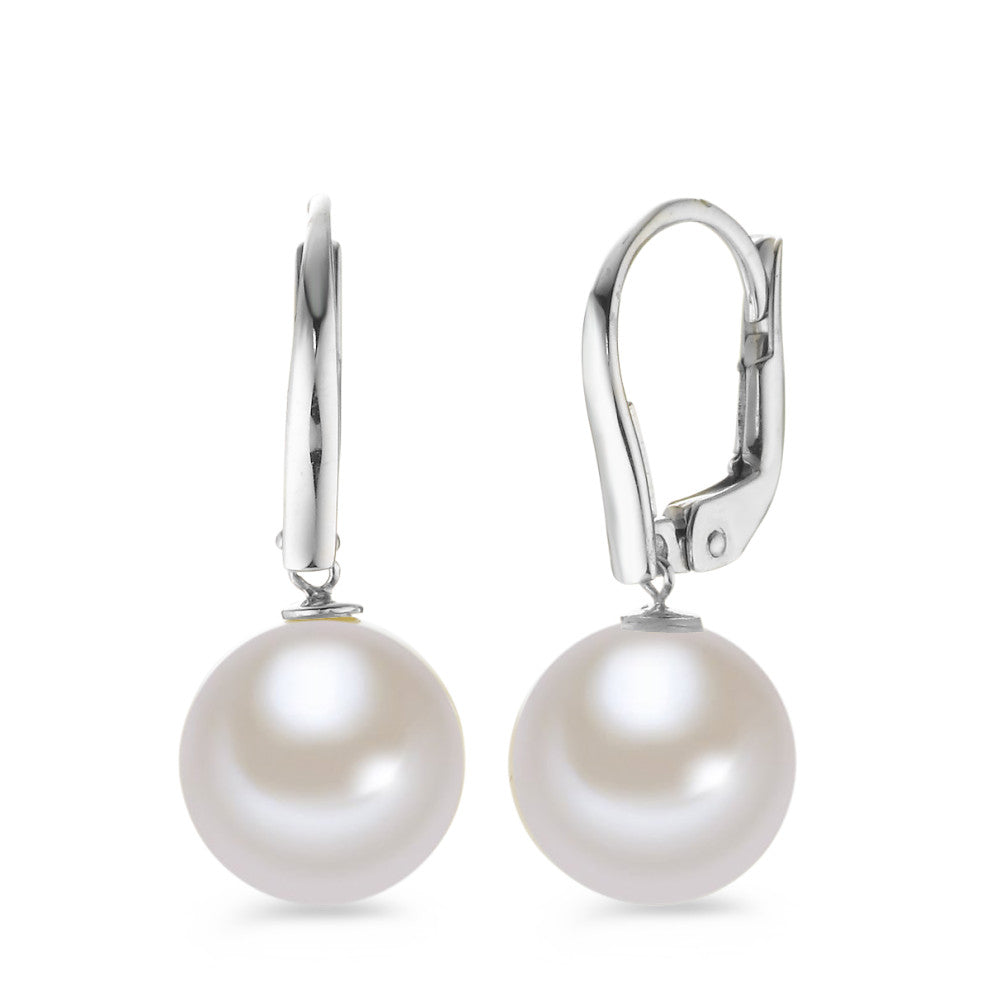Orecchini Oro bianco 750/18 carati Perla coltivata d'acqua dolce bianco, 2 Perla, 10 mm