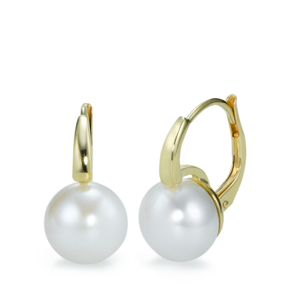 Orecchini Oro giallo 375/9K Perla coltivata d'acqua dolce bianco, 2 Perla, 8.5 mm