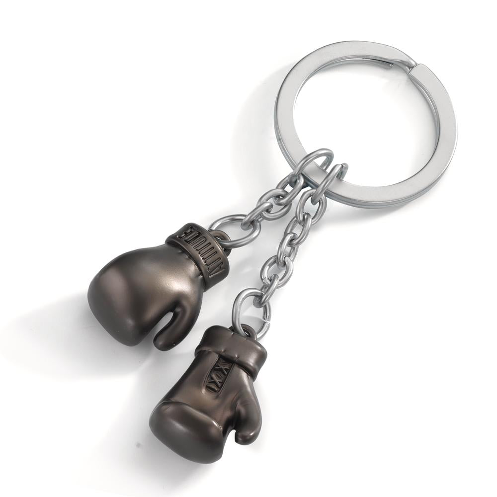 Portachiavi in metallo con due mini guantoni da boxe. Design resistente e dettagli curati lo rendono perfetto per gli appassionati di boxe o come regalo originale. Un accessorio unico per tenere sempre con te la passione per il pugilato.