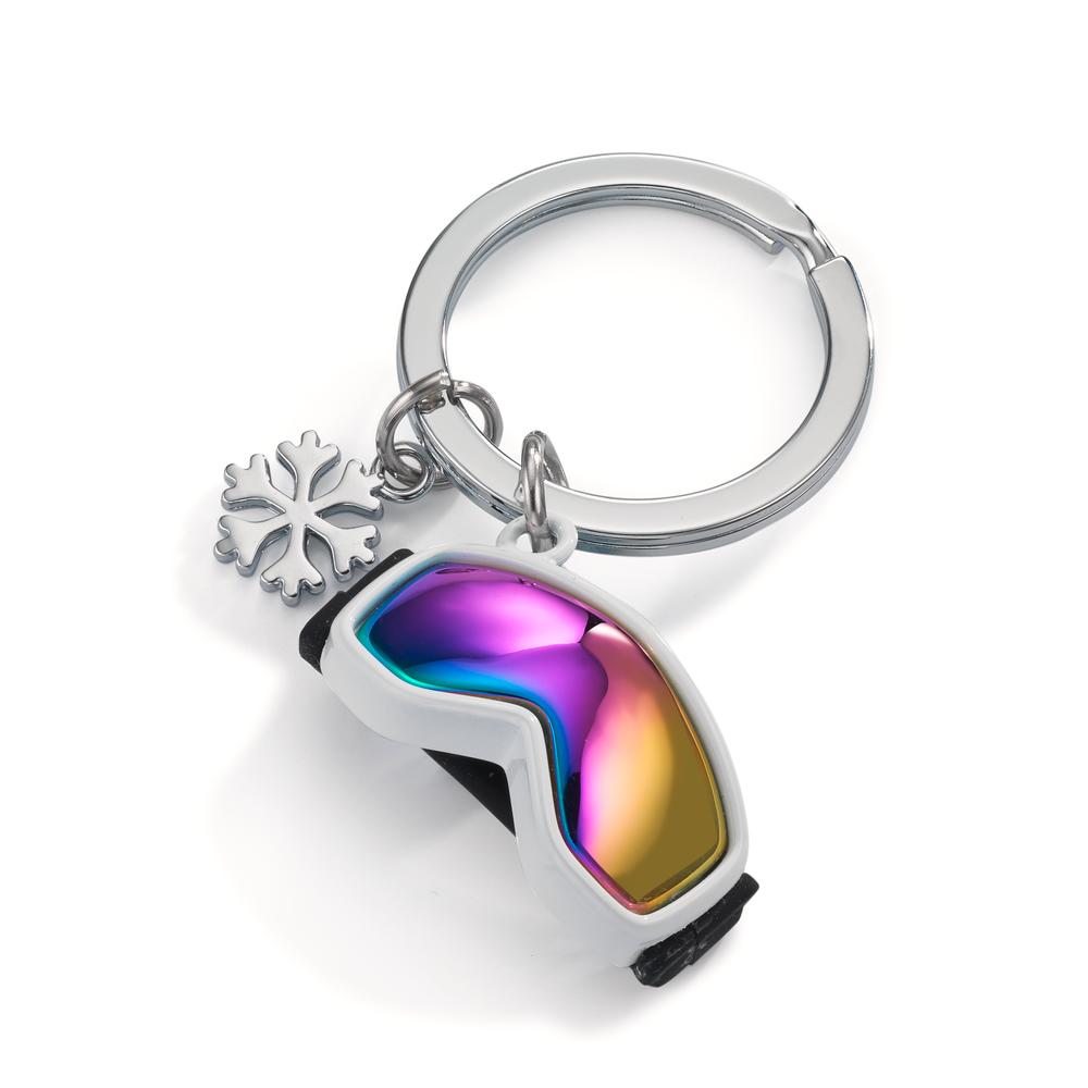 Portachiavi in metallo con design originale a forma di maschera da sci e piccolo fiocco di neve. Dettagli curati e colori vivaci che rendono questo portachiavi perfetto per gli amanti degli sport invernali o come simpatico regalo. Robusto e resistente all'uso quotidiano.