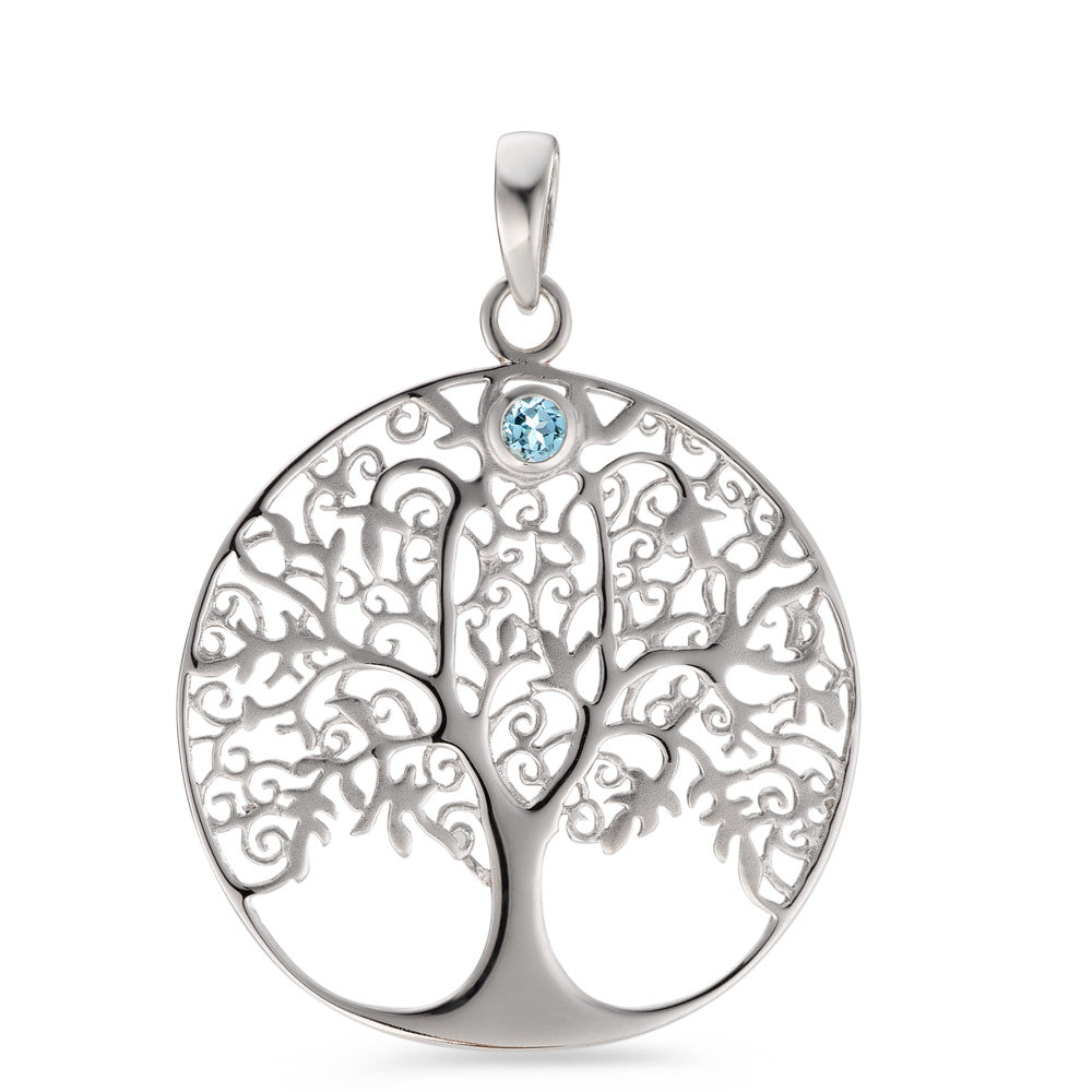 Eleganter Damen-Anhänger aus Silber mit filigranem Lebensbaum-Design. Der strahlende Topas in zartem Blau setzt einen besonderen Akzent und verleiht dem Schmuckstück eine lichte, natürliche Ausstrahlung. Perfekt für jeden Anlass und ein schönes Geschenk.