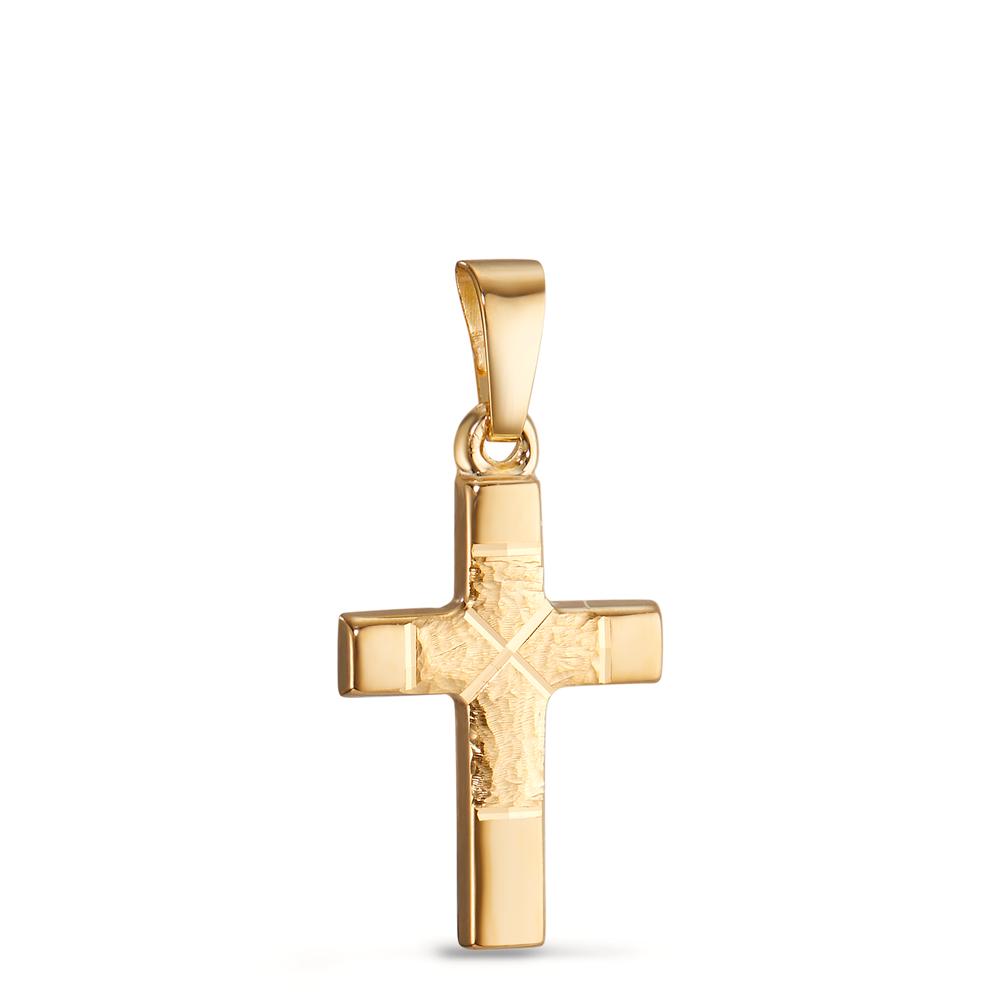 Eleganter Anhänger aus 375er Gelbgold in Kreuzform. Die Mischung aus polierten und strukturierten Flächen verleiht dem Schmuckstück einen besonderen Charme. Perfekt als zeitloses Accessoire oder Geschenk mit symbolischer Bedeutung. Hochwertige Verarbeitung garantiert.