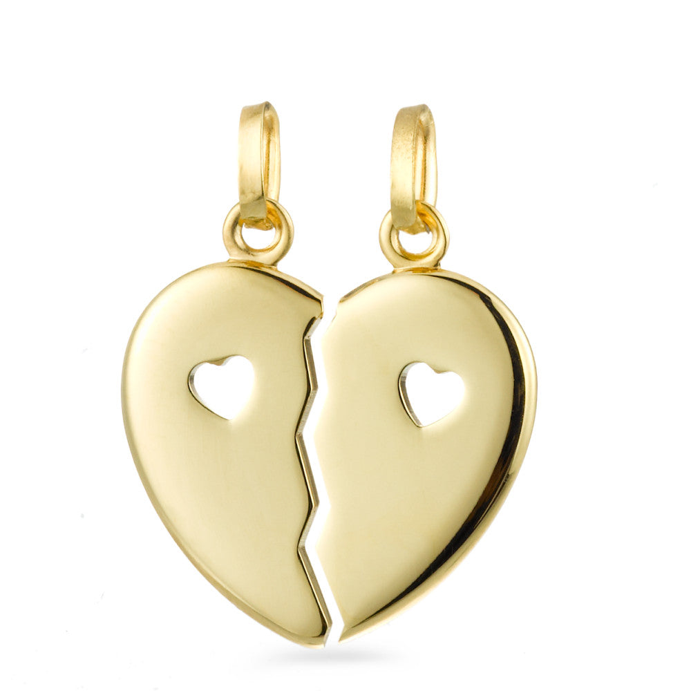 Zauberhafter Herz-Anhänger aus hochwertigem 375er Gelbgold. Das zweiteilige Design mit zwei kleinen Herz-Aussparungen symbolisiert Verbundenheit und Liebe. Perfekt als Geschenk für Paare oder beste Freunde, die ihre besondere Beziehung stilvoll zeigen möchten.