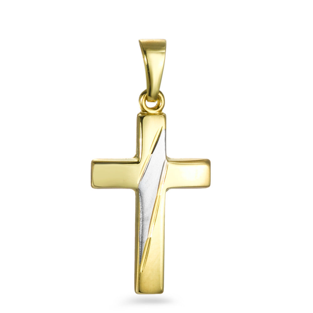 Eleganter Kreuz-Anhänger aus 375er Gelbgold mit feinen Weissgold-Details. Dieses zeitlose Schmuckstück vereint klassische Form mit moderner Eleganz und eignet sich ideal als symbolisches Geschenk oder stilvolles Accessoire für jeden Tag. Perfekt für persönliche Werte und Glauben.