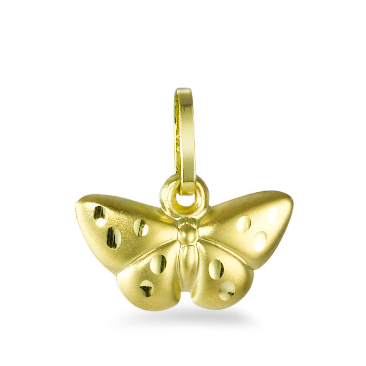 Zarter Kinderanhänger in Form eines Schmetterlings aus hochwertigem 375er Gelbgold. Der liebevoll gestaltete Anhänger ist leicht und kindgerecht, perfekt als bezauberndes Geschenk oder zur Ergänzung der ersten Schmuckstücke deines Kindes. Ein Symbol für Leichtigkeit und Freude.