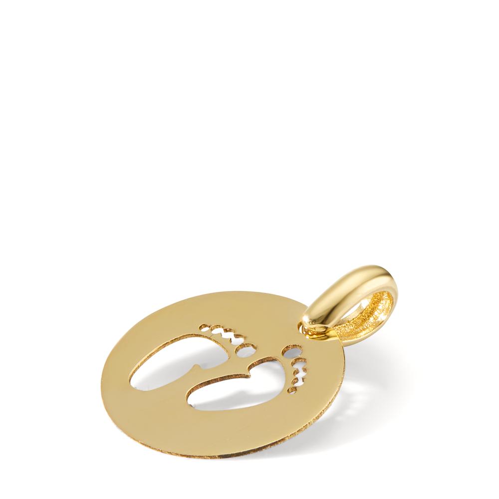 Dieser edle Baby-Anhänger aus 585er Gelbgold zeigt filigran ausgeschnittene Babyfüsse. Ein bezauberndes Schmuckstück, das liebevoll an die ersten Schritte erinnert und perfekt als Geschenk oder Andenken an besondere Momente geeignet ist. Hochwertig und zeitlos.