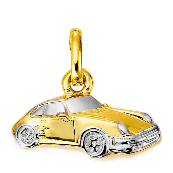Eleganter Herren Anhänger in Form eines sportlichen Autos aus hochwertigem 750er Gelbgold. Feine Details und zweifarbige Akzente machen diesen einzigartigen Schmuckanhänger zum perfekten Accessoire für Autoliebhaber, das Stil und Leidenschaft vereint.