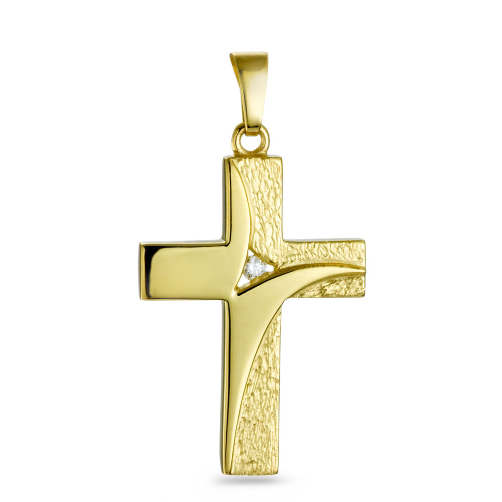 Anhänger 750/18 K Gelbgold Diamant 0.03 ct, w-si Kreuz