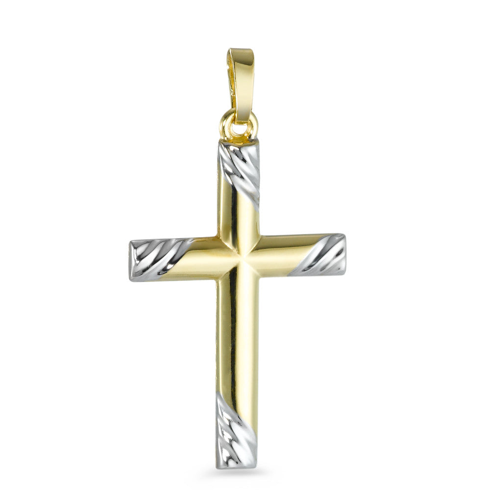 Eleganter Kreuz-Anhänger aus 750er Gelbgold mit dezenten weissen Akzenten. Zeitloses Design, das Ihrem Schmuckstück einen feinen, stilvollen Akzent verleiht. Perfekt als Geschenk oder für den täglichen Gebrauch. Hochwertige Verarbeitung für langlebigen Glanz.