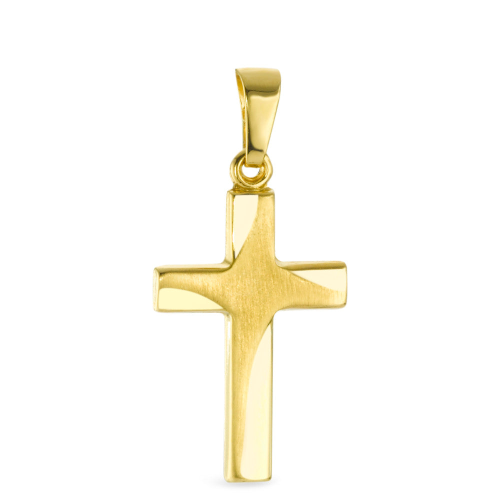 Eleganter Anhänger in Kreuzform aus 750er Gelbgold. Das klassische Design überzeugt mit einer Kombination aus polierten und mattierten Flächen, die dem Schmuckstück eine dezente Tiefe verleihen. Perfekt als symbolischer Begleiter für jeden Tag.