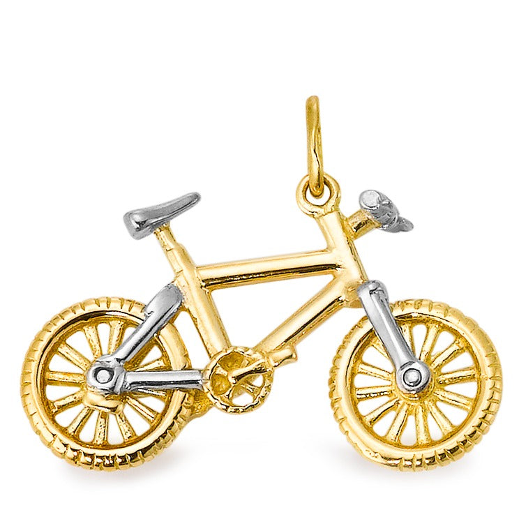 Dieser exklusive Herrenanhänger aus 750er Gelbgold präsentiert ein detailreich gestaltetes Mountainbike-Design. Die Kombination aus Gelb- und Weissgold unterstreicht die filigranen Details und macht den Anhänger zum idealen Schmuckstück für sportliche Männer mit Leidenschaft fürs Fahrradfahren.