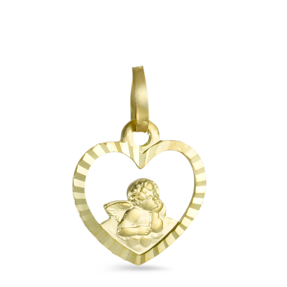 Zauberhafter Baby-Anhänger aus hochwertigem 750er Gelbgold mit liebevoll gestaltetem Schutzengel im Herzen. Ein besonderes Geschenk zur Taufe oder Geburt, das Geborgenheit und Schutz symbolisiert. Perfekt für zarte Babyketten und bleibende Erinnerungen.