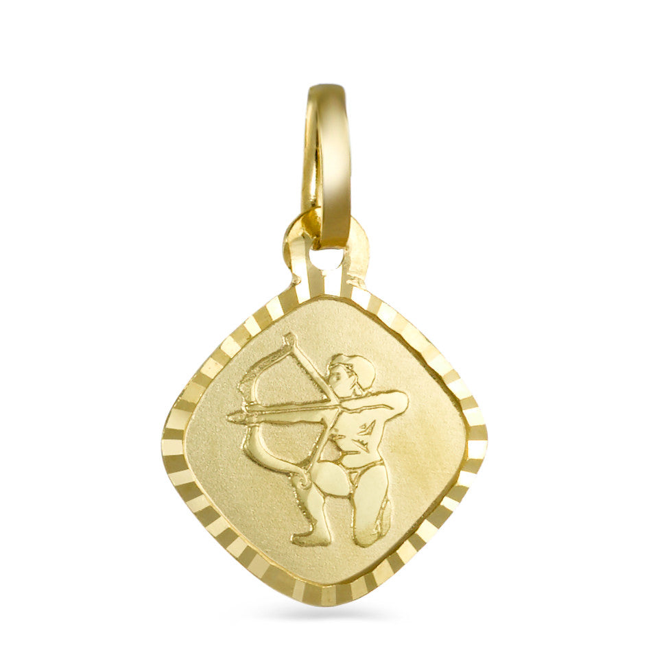 Eleganter Anhänger aus 750er Gelbgold mit dem Sternzeichen Schütze. Das feine Design zeigt einen Bogenschützen, symbolisch für Zielstrebigkeit und Optimismus. Ein persönliches Schmuckstück, perfekt als Geschenk oder zum Selbsttragen. Hochwertige Verarbeitung garantiert langlebigen Glanz.