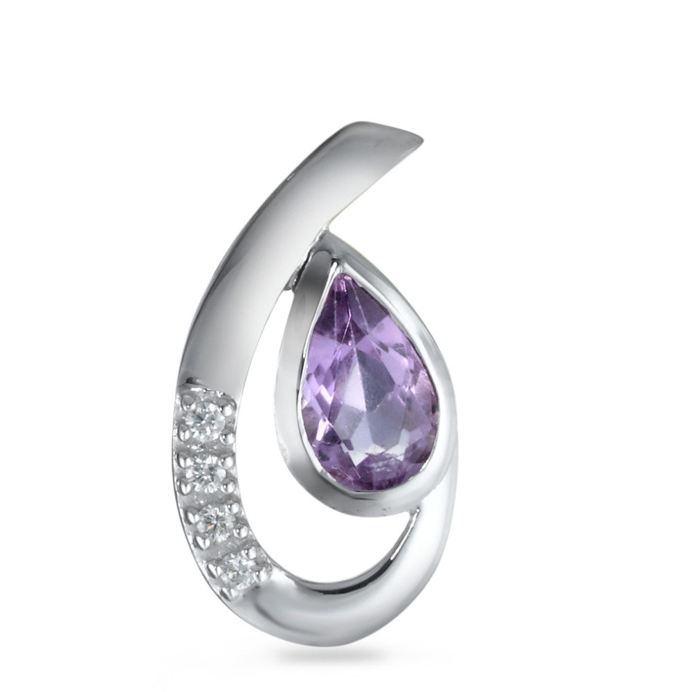 Eleganter Damenanhänger aus hochwertigem 750er Weissgold, verziert mit einem strahlenden Amethyst in Tropfenform. Dezente Zirkonia-Akzente runden das stilvolle Design ab und verleihen dem Schmuckstück zeitlose Schönheit und edlen Glanz – perfekt für jeden Anlass.