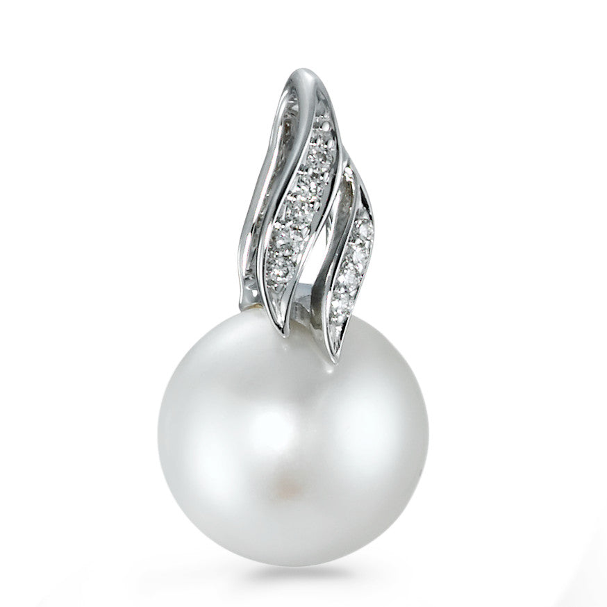 Anhänger 750/18 K Weissgold Diamant 0.04 ct, 9 Steine, Brillantschliff, w-si Süsswasserzuchtperlen 9.5-10 mm