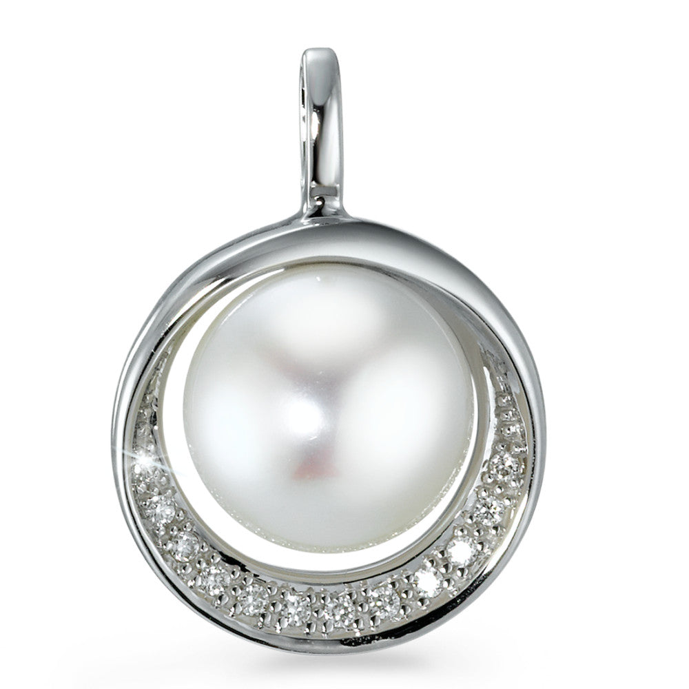 Anhänger 750/18 K Weissgold Diamant 0.06 ct, 12 Steine, Brillantschliff, w-si Süsswasserzuchtperlen 9.5-10 mm Ø15 mm