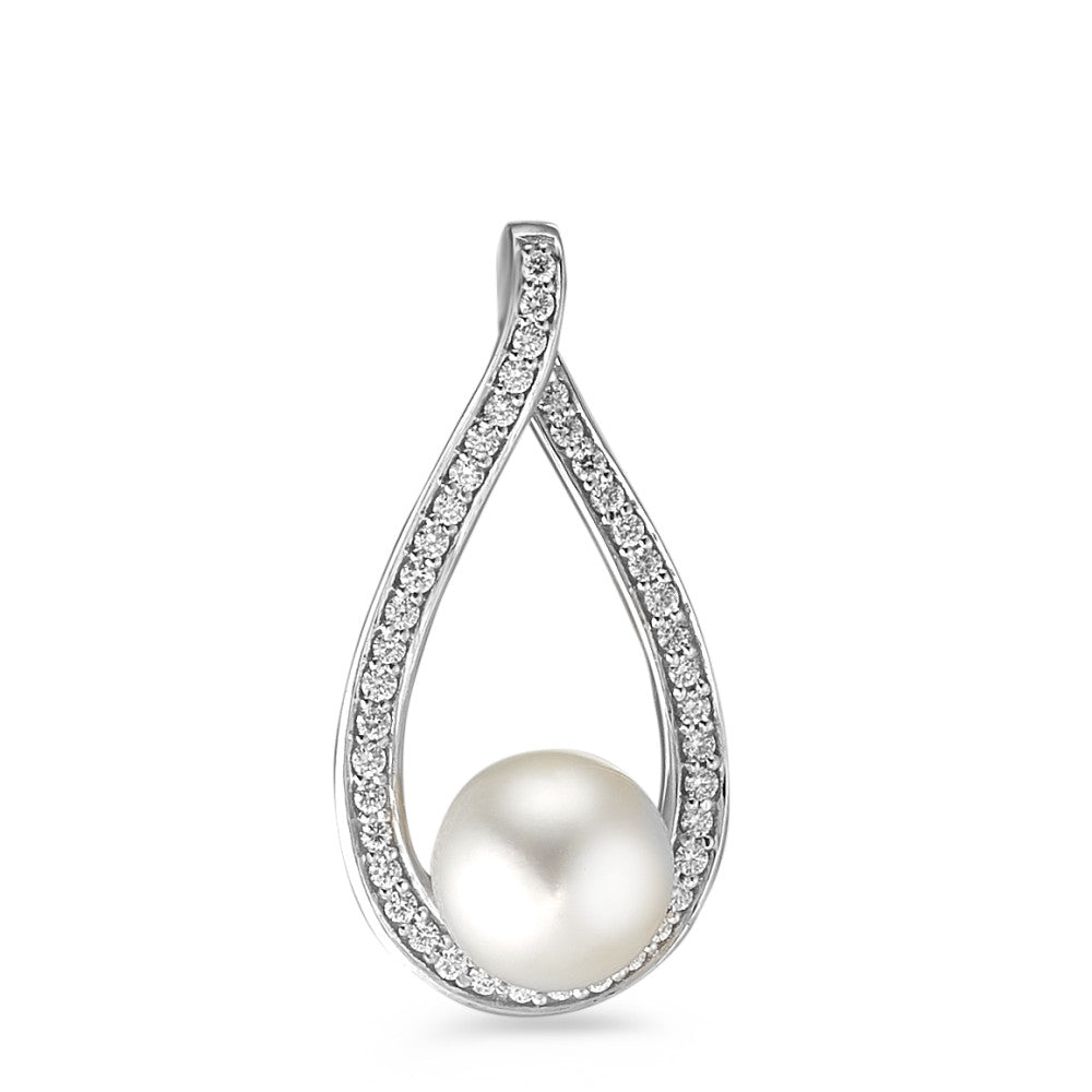 Anhänger 750/18 K Weissgold Diamanten 0.12 ct, w-si Süsswasserzuchtperle weiss, 6 mm